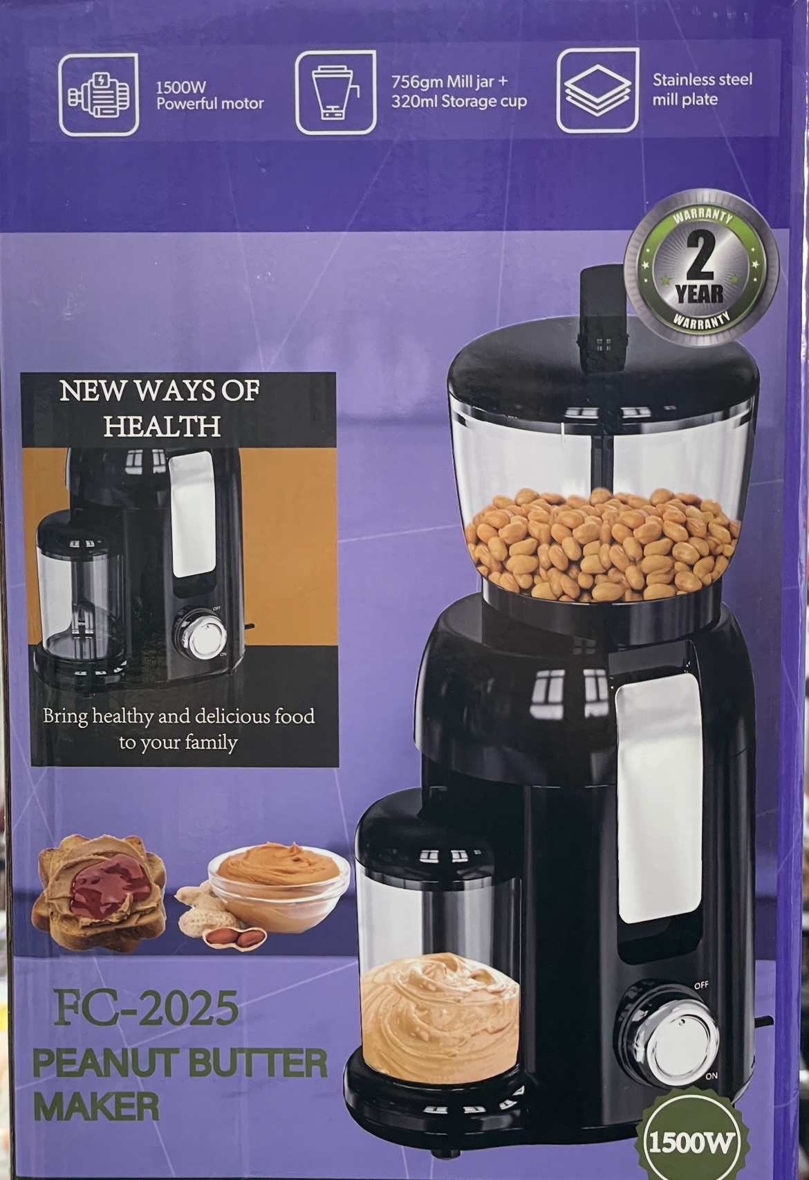 بدون روغن یا مواد نگهدارنده اضافه کره بادام زمینی ۱۰۰٪ خالص و طبیعی را در خانه درست کنید و از کنترل کامل بر مواد اولیه خود برای انتخابی سالمتر لذت ببرید. طراحی جمع و جور و شیک طراحی شده برای قرار گرفتن یکپارچه در هر آشپزخانه مدرن بدون اشغال فضای زیاد، که سبکی را با راحتی ترکیب میکند. موتور قدرتمند ۱۵۰۰ وات بادام زمینی را به راحتی و به طور موثر به کرهای نرم و خامهای آسیاب میکند و هر بار نتایج ثابتی ارائه میدهد. نرمی بیدردسر صفحه آسیاب از جنس استیل ضد زنگ، آسیابی نرم و یکنواخت را برای کره بادام زمینی عالی در هر بار تضمین میکند. ظرفیت زیاد شیشه با شیشه آسیاب ۷۵۶ گرمی، میتوانید کره بادام زمینی خود را به راحتی آسیاب و نگهداری کنید و مقدار کافی برای سری بعدی خود را تضمین کنید. لیوان نگهداری راحت یک لیوان نگهداری ۳۲۰ میلیلیتری به شما امکان میدهد کره بادام زمینی تازه تهیه شده خود را به طور مرتب نگهداری و آماده استفاده نگه دارید.