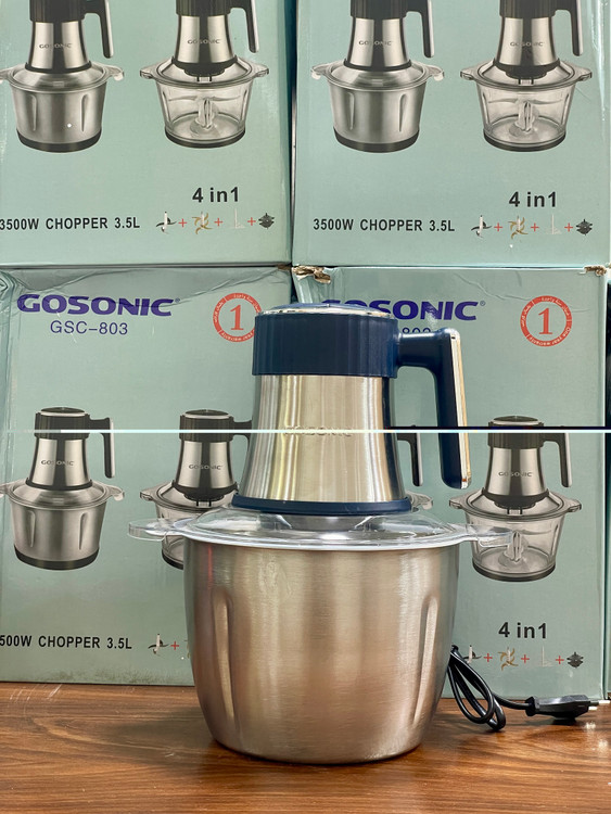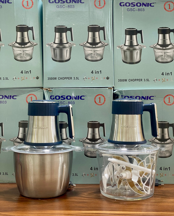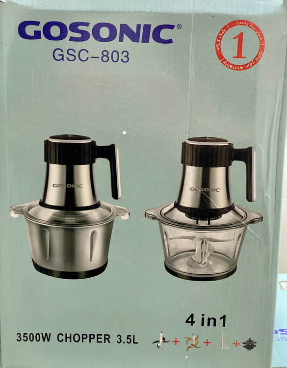 خردکن دو کاسه گوسونیک- ۶+۴ تیغه تیتانیوم طلایی همراه با سیر پوست کن همزن و کاردک - 3 کاره- قدرت 3500 وات مدل GSC-803