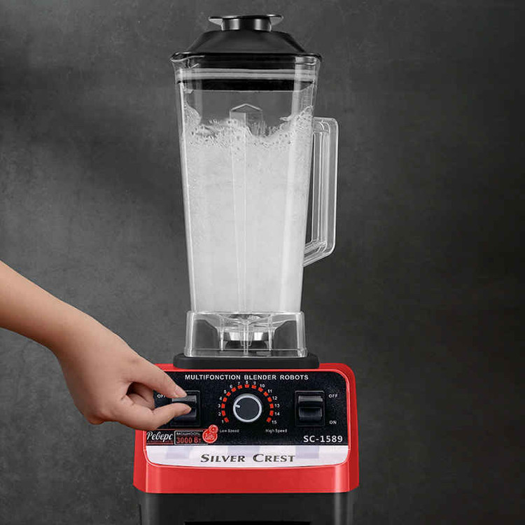 مخلوط کن سیلورکرست مدل SC-1589 از بهترین و پرقدرت ترین مخلوط کن های موجود در بازار می باشد. مخلوط کن با نام بلندر هم شناخته می شود. مخلوط کن سیلور کرست شامل یک پارچ هست که دارای 2 تیغه فولادی که شامل 6 پره می باشد. از بلندر معمولا برای تهیه نوشیدنی ها استفاده میشود و معمولا باید مقداری مایع به همراه میوه و یخ نیز در مخلوط کن ریخته شود. همچنین از مخلوط کن می توان برای میکس و له و یکنواخت کردن همه ی مواد استفاده کرد.مخلوط کن سیلور کرست جهت خرد کردن میوه، سبزیجات، آجیل، یخ، در چند ثانیه است. موتور قوی تایمر دار با عملکرد بالا مناسب برای آبمیوه فروشی، کافی شاپ، کافه ها ، سبزیجات خرد شده و تهیه اسموتی یخ زده در خانه استفاده شود. این مخلوط کن دارای تیغه های با دوام است که توانایی بالا در جهت هم زدن میوه های درشت و سفت را دارد.این مخلوط کن بهترین و جذابترین پوره یخ را ایجاد میکند. درب این مخلوط کن سیلورکرست مدل SC-1589 دارای دریچه شکرپاش است و امکان اضافه کردن شکر و یا دیگر مواد را، در حین کار با دستگاه ممکن می سازد. این دستگاه به شما این اجازه رو میده که از گزینه “پالس” استفاده کنید. به این مفهوم که مواد جامد رو در حد مورد نیاز خرد و یا پودر میکنید. با پالس زدن شما میزان خورد کردن مواد رو تحت کنترل دارید و یا اینکه مواد نیمه جامد رو در حد مورد نیاز پوره و یا له میکنید. مخلوط کن سیلور کرست SC-1589 یک دستگاه چند منظوره با قابلیت آسیاب و مخلوط کن می باشد که قابلیت آسیاب و مخلوط کردن انواع مواد غذایی قابل خرد شدن اعم از سبزیجات، میوه، ادویه و… را دارد. این دستگاه به یک موتور قدرتمند با توان بالا مجهز است که قابلیت چرخش با سرعت 32000 دور در دقیقه را دارد که به آسانی و در کمترین زمان مواد مورد نطر را مخلوط کرده و آن را برای شما آماده می کند. مدل 1589 قابلیت تنظیم سرعت را دارد و با استفاده از دکمه گرداننده ای که بر روی دستگاه تعبیه شده بسته به نوع مواد غذایی می توانید سرعت آن را تنظیم کنید و همچنین می توانید سرعت موتور را بر روی دور آهسته و یا دورسرعت بالا قرار دهید. مخلوط کن سیلور کرست 1589 دارای تیغه هایی از جنس استیل ضد زنگ است که بسیار محکم و با دوام طراحی شده و حتی قابلیت خرد کردن یخ را نیز دارد. جنس کاسه مخلوط کن از شیشه پلی کربنات ساخته شده