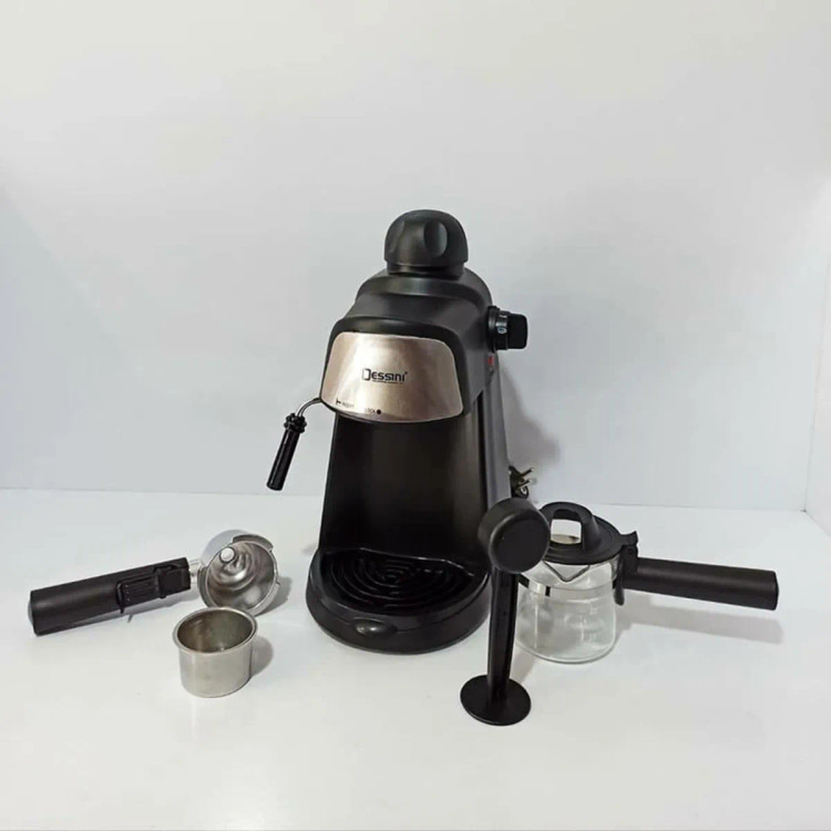 دسینی مدل 333 ساخته شده از بدنه استیل، پلاستیک و با برخورداری از توان 800 وات، دستگاهی کاربردی با نمای ظاهری زیباست که برای مصارف خانگی، سوپر مارکت ها و یا کافه های کوچک عرضه شده. این دستگاه چند کاره با پمپ فشار 5 بار قادر است نوشیدنی هایی همچون اسپرسو، کافه لاته، کاپوچینو و سایر نوشیدنی های گرم را در مدت زمان کوتاهی با حفظ عطر و طعم آماده نماید. دسینی برای افزایش کارایی و طول عمر، تمامی اجزا، قطعات داخلی و لوله های بخار را از جنس فولاد ضد زنگ ساخته که از استحکامی بالایی برخوردار گردیده اند. کاربرد و عملکرد اسپرسو ساز Dessini 333 بسیار آسان می باشد و با فشردن دکمه Power، دستگاه روشن می گردد و در حالت آماده به کارقرار می گیرد. پیچ تنظیمی بر روی اسپرسوساز خودنمایی می کند که با کمک آن می توان به راحتی انواع نوشیدنی های گرم را تهیه نمود. ظرفیت مخزن در نظر گرفته شده برای اسپرسوساز 333 دسینی 1.6 لیتر می باشد و از طریق نشانگر طراحی شده بر روی آن می توان از پر و یا خالی بودن مخزن مطلع گردید. از ویژگی برجسته این مخزن، مجهز بودن به فیلتر آب است که از ورود رسوبات آب به داخل مخزن تهیه قهوه، جلوگیری می کند. قراگیری سینی چکه گیر، زیر دهانه خروجی از دیگر امکانات این مدل محسوب می شود که مانع از چکه کردن قهوه بر روی سطح دستگاه گردیده که بعد از هر بار استفاده قابل تخلیه می باشد. دسینی ( Dessini ) شرکت ایتالیایی است که با تولید محصولات با کیفیت و متنوع در زمینه لوازم خانگی، نقش بسزایی را در بازار داخل و خارج از کشور ایفا می کند. گفتنی است، بسیاری از کالاهای این برند در کشورهایی همچون ایران، ایتالیا، ترکیه و اسپانیا با بهترین کیفیت و متریال نیز ساخته و عرضه می شوند.