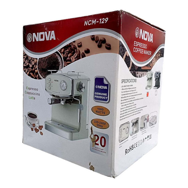 اسپرسو و قهوه ساز 1500 وات نوا اصلی کد 129 قدرت 20 بار مدل نووا NOVA NCM-129 اسپرسو ساز