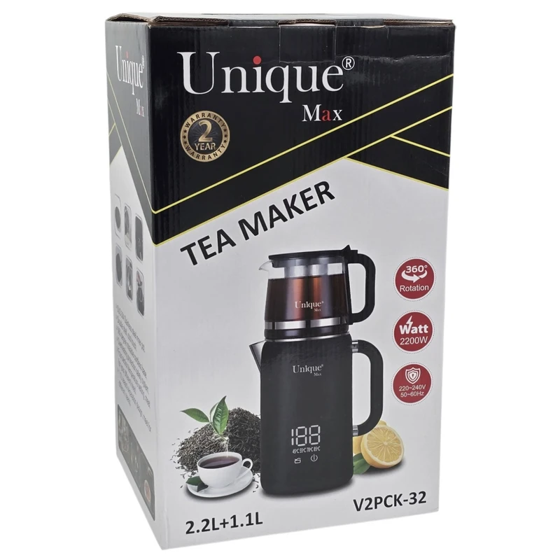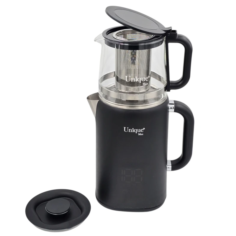 ✅ ظرفیت بهینه: کتری استیل 304 با ظرفیت 2/2 لیتر + قوری پیرکس نشکن 1/1 لیتر ✅ توان بالا: 2200 وات برای جوش سریع آب ✅ سیستم ایمنی پیشرفته: خاموشی خودکار در صورت فشار به دستگاه ✅ المنت مقاوم: المنت استریکس با دوام و کیفیت بالا ✅ نمایشگر دیجیتال: کنترل دقیق دما و زمان